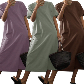 Summer Women's Short Sleeve Casual T-shirt Dresses Loose Breathable Plain Ladies Versatile Long Dress