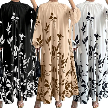 Middle East Women's Dress Dubai Arabian Robe Abaya Islamic Clothing Fashion Printed Plus Size Dresses